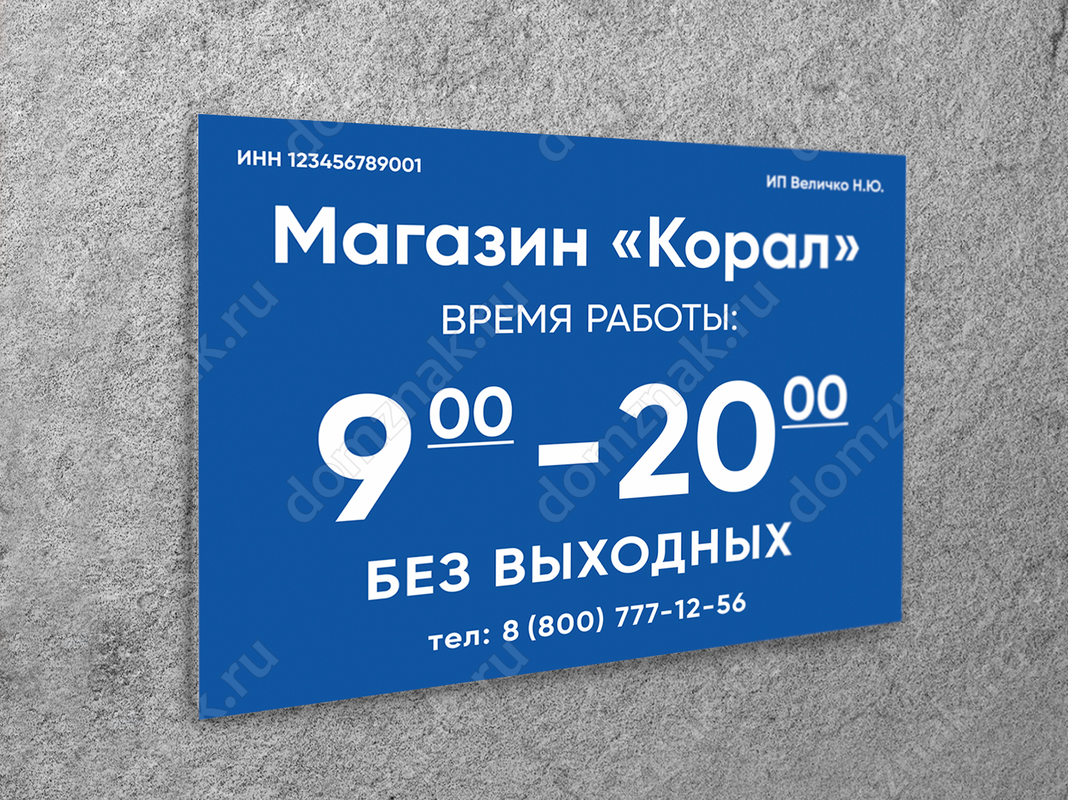 Табличка «Время работы»