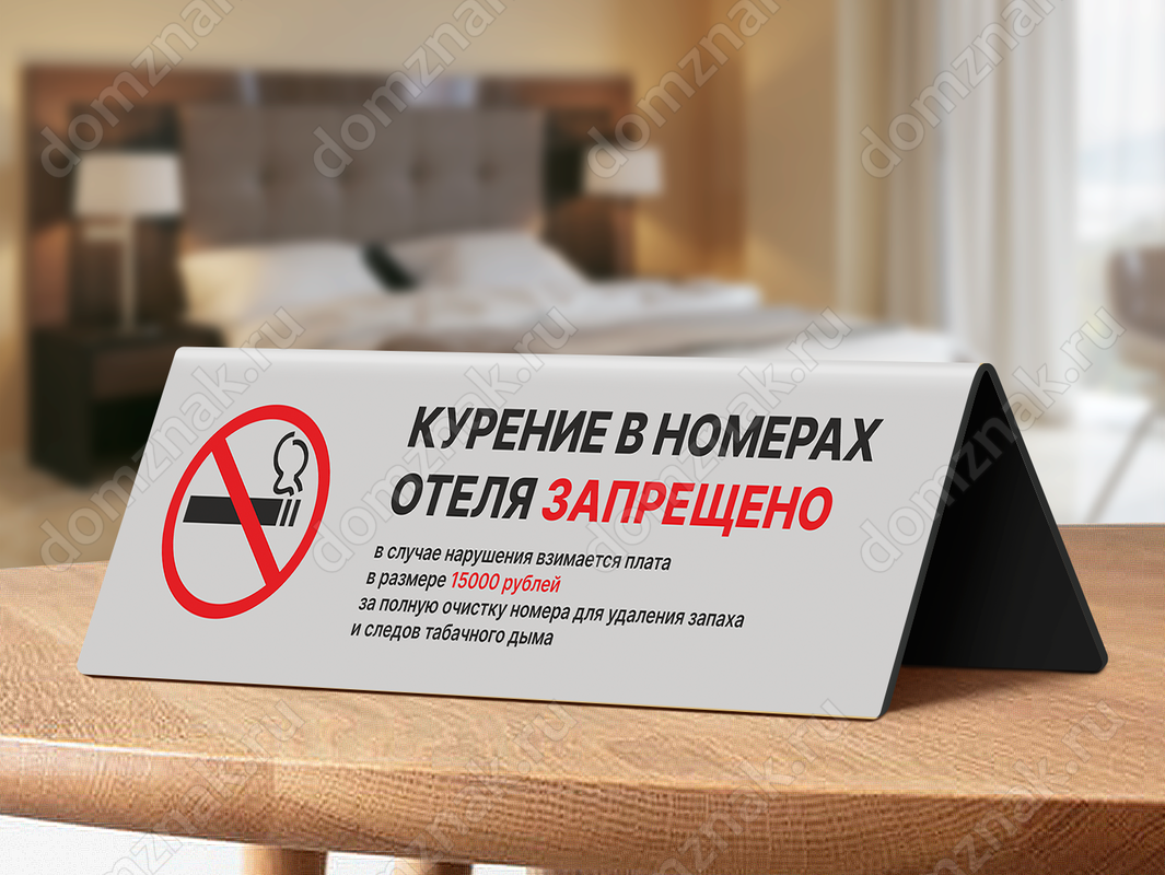 Настольная табличка «Курение в номерах отеля запрещено»
